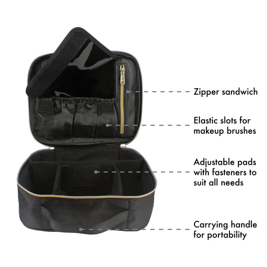 Travel Makeup Case, Adjustable Divider Makeup Bag, Black