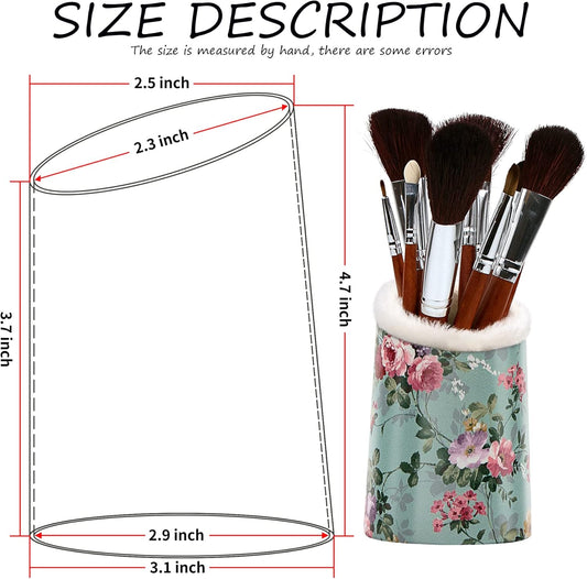 2 PCS a Set, PU Leather Plush Fluffy Makeup Brush Holder, Cosmetic Brushes Comb Pen Storage Holders Cup with Unique Printed Patterns