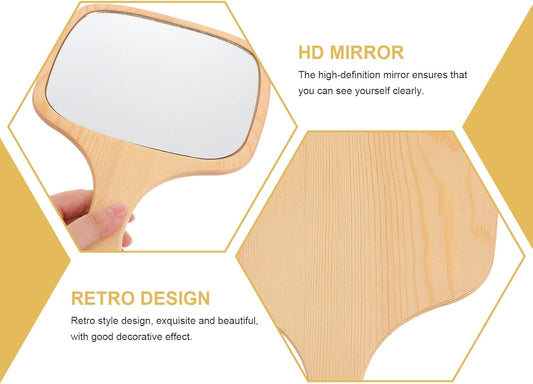 • Wood Makeup Mirrors, Portable Wooden Handle Hand Held Makeup Mirrors Vintage Wood Vanity Cosmetic Mirror Travel Makeup Mirror for Women (Size 2 Large)